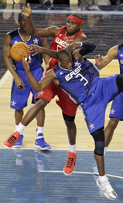 美國(guó)當(dāng)?shù)貢r(shí)間2月14日,2010NBA全明星周末,東部明星隊(duì)以141比139險(xiǎn)勝西部明星隊(duì)。整場(chǎng)比賽猶如度假一般全無(wú)緊張氣氛。圖片來(lái)源:中國(guó)新聞網(wǎng)