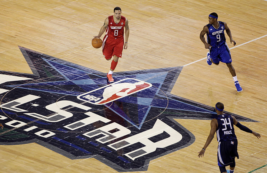 圖為全明星賽賽場上,西部明星隊正在進(jìn)攻。