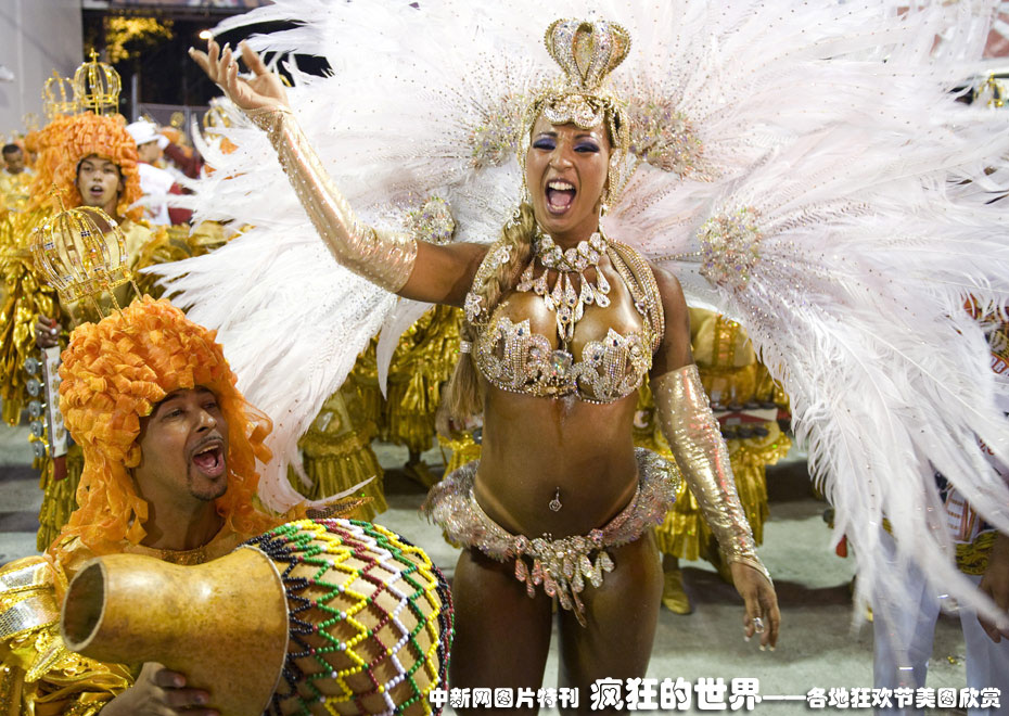 巴西狂歡節(jié)活動(dòng)在每年2月“圣灰日”前的星期五開(kāi)始,一般持續(xù)到第二周的星期三上午結(jié)束,有的城市則要持續(xù)一周。在此期間,除了正規(guī)桑巴學(xué)校的正式游行表演外,每天都有大批民眾從早到晚,甚至徹夜不眠地在街頭和海灘載歌載舞狂歡。 巴西狂歡節(jié)始于19世紀(jì)中葉,其桑巴舞大賽演員人數(shù)之多,服裝之華麗堪稱世界之最。同時(shí),巴西也是世界唯一一個(gè)在全國(guó)各地都舉行狂歡節(jié)的國(guó)家,不同地區(qū)的活動(dòng)各有特色,其中里約熱內(nèi)盧的狂歡節(jié)最為著名,每年吸引大量來(lái)自世界各地的旅游者前來(lái)觀看。圖片來(lái)源:中國(guó)新聞網(wǎng)