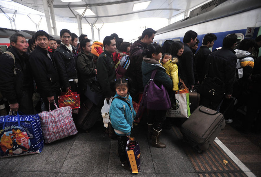 春節(jié)七天長假接近過半,部分返鄉(xiāng)者提前返程,武漢鐵路部門迎來春節(jié)后的首個客流高峰。圖為武昌火車站。周超 攝