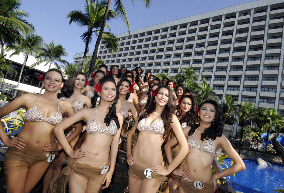 2月18日,在菲律賓首都馬尼拉,參加2010年菲律賓小姐競(jìng)選的選手們?cè)谡故居狙b。當(dāng)日,共有24名佳麗參加了這項(xiàng)比賽。圖片來(lái)源:中國(guó)新聞網(wǎng)