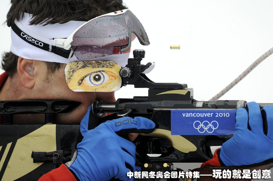 男子冬季兩項(xiàng)比賽中,挪威選手的眼罩別具一格。圖片來源:中國新聞網(wǎng)