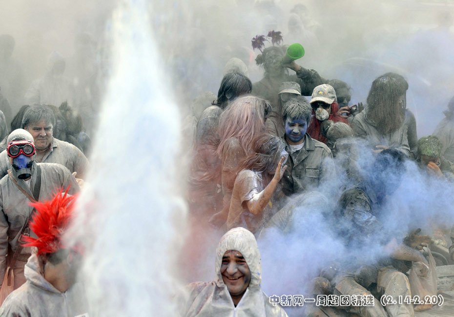 2月15日,希臘港口加拉西迪,狂歡者在街頭參加“面粉大戰(zhàn)”!懊娣鄞髴(zhàn)”是當(dāng)?shù)貞c祝狂歡季結(jié)束的一項傳統(tǒng)活動,隨后將是為期40天的齋戒月直至復(fù)活節(jié)。圖片來源:中國新聞網(wǎng)>>點擊觀看詳細內(nèi)容