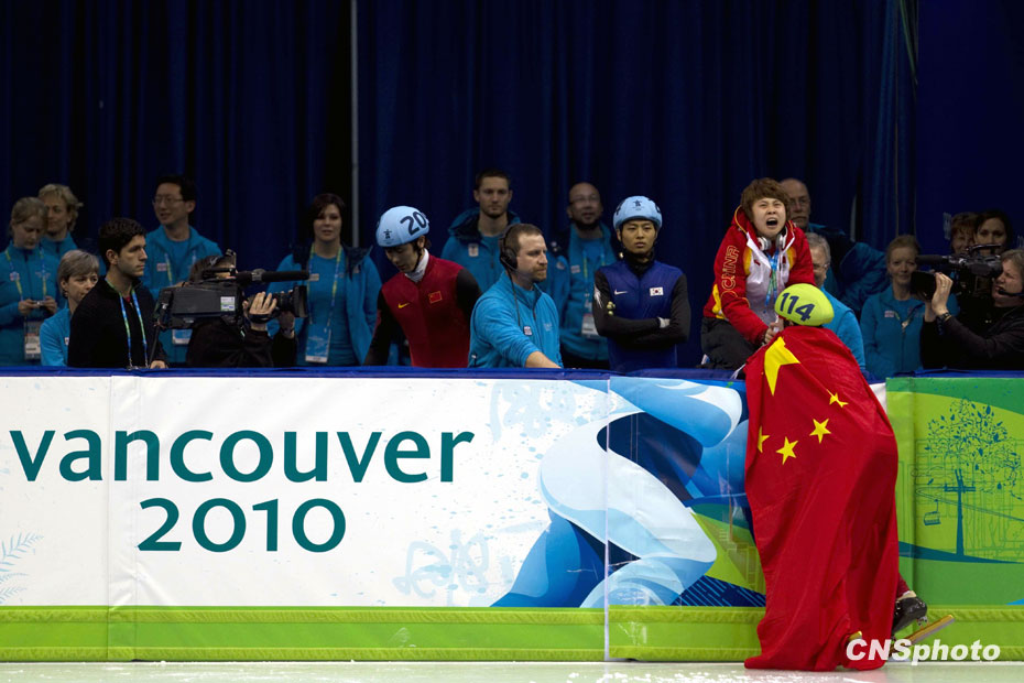 2月21日中午,剛剛結(jié)束的冬奧會短道速滑女子1500米決賽中,中國選手周洋力壓各路名將,以破奧運(yùn)會紀(jì)錄的2分16秒993的成績奪冠,為中國代表團(tuán)添得第三金。中新社發(fā) 盛佳鵬 攝