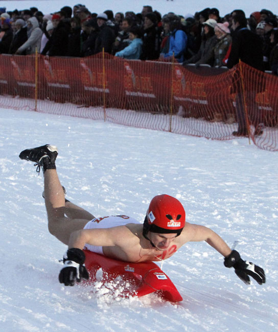 近日,在德國(guó)北部小鎮(zhèn)舉行了一場(chǎng)別開生面的滑雪大賽,參賽者在冰天雪地中赤裸著上身在滑雪板上滑行。超過(guò)一萬(wàn)名觀眾觀看了比賽。