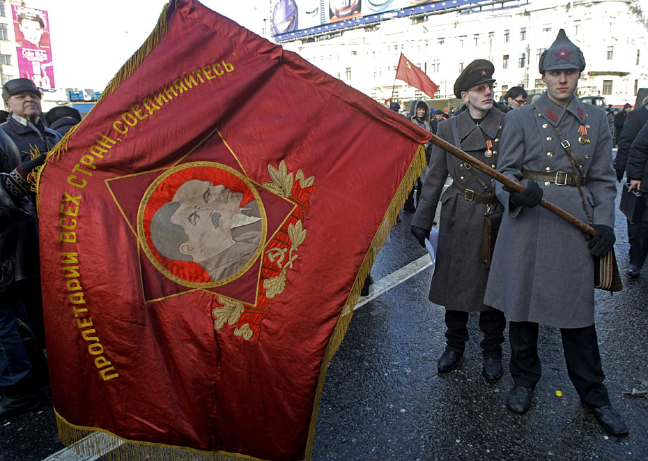 2月23日,俄羅斯莫斯科,示威者參加俄羅斯共產(chǎn)黨組織的集會(huì),抗議軍隊(duì)改革。圖片來源:中國(guó)新聞網(wǎng)