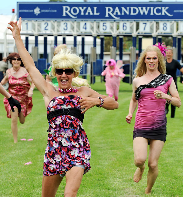 當?shù)貢r間2月26日,澳大利亞悉尼,眾多同性戀們濃妝艷抹在皇家賽馬場舉行賽跑,迎接即將到來的悉尼同性戀大游行。
