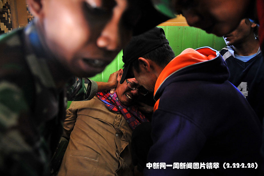 25日(周四),在印尼西爪哇,一名男子得知親人喪生泥石流失聲痛哭。