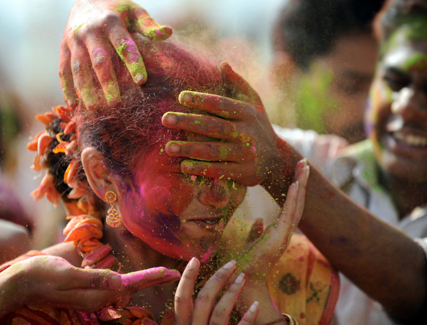 印度灑紅節(jié) 民眾互灑顏料送祝福