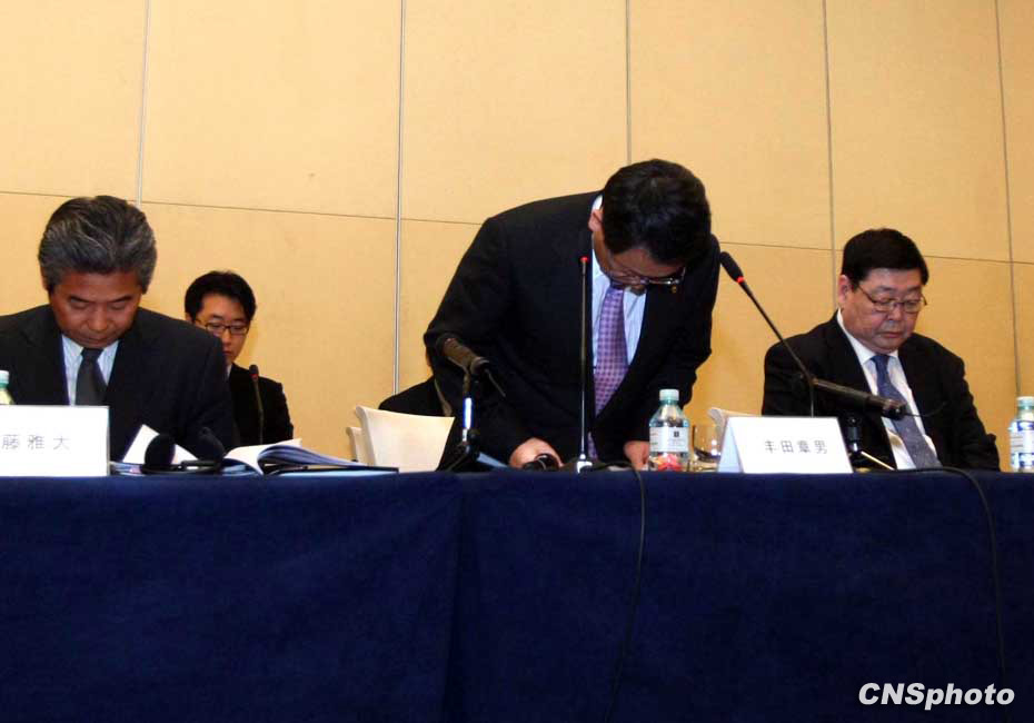 3月1日,豐田汽車總裁豐田章男今日在北京舉行記者會(huì),介紹了豐田汽車大規(guī)模召回的原因及處理措施,并向中國消費(fèi)者鞠躬道歉。
