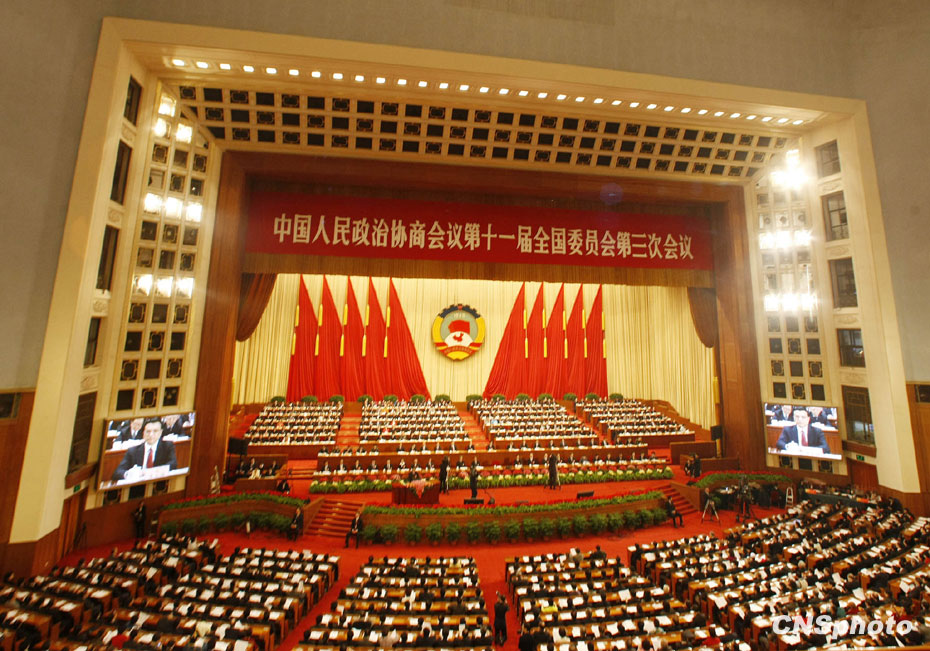 3月3日下午,中國政治生活中的年度盛會——全國政協(xié)十一屆三次會議在北京人民大會堂隆重開幕。圖片來源:中國新聞網(wǎng)