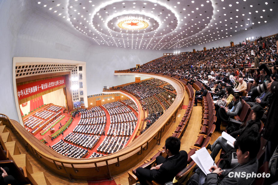 3月5日上午9時(shí),十一屆全國(guó)人大三次會(huì)議在北京隆重開幕。國(guó)務(wù)院總理溫家寶作政府工作報(bào)告。圖片來(lái)源:中國(guó)新聞網(wǎng)