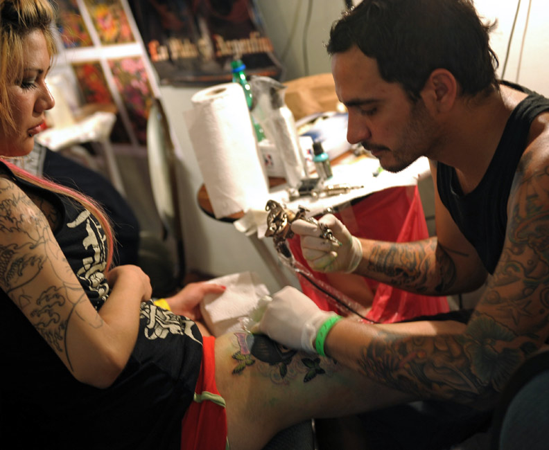 當(dāng)?shù)貢r(shí)間3月7日,第六屆國(guó)際紋身展在阿根廷首都布宜諾斯艾利斯舉行。來自美國(guó)、法國(guó)、西班牙、墨西哥、智利、巴西等國(guó)家的紋身高手前來獻(xiàn)藝。圖片來源:中國(guó)新聞網(wǎng)