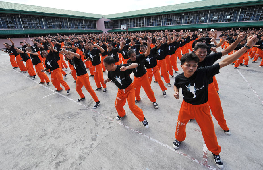 近日,在菲律賓超過1500名囚犯在監(jiān)獄中集體學(xué)習(xí)已故歌壇巨星杰克遜的舞蹈,以此來激起他們生活的斗志。圖片來源:中國新聞網(wǎng)