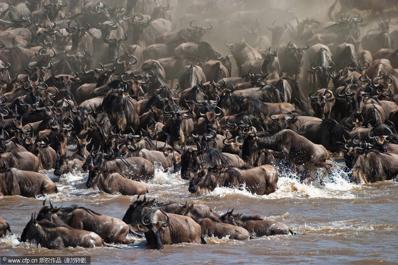 3月17日消息,捷克野生動物攝影師瓦拉夫·希爾哈(Vaclav Silha)在肯尼亞馬賽瑪拉(Masai Mara)國家保護(hù)區(qū)拍到了罕見的牛羚大遷移場面。上百萬牛羚集體穿越馬拉河,同時(shí)為了防止被水中的鱷魚咬到及逃避岸邊叢林里的老虎,牛羚群制造出巨大的聲響并急沖到對岸。barcroftmedia/CFP