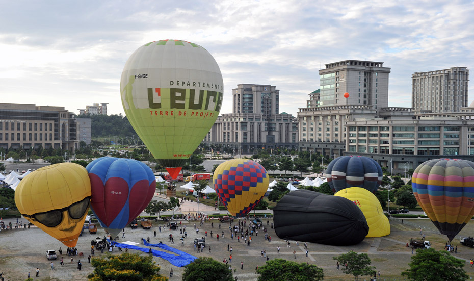 3月18日,第二屆國(guó)際熱氣球嘉年華在馬來西亞開幕,來自法國(guó),荷蘭,美國(guó),比利時(shí),韓國(guó),德國(guó),瑞士和日本等國(guó)的22個(gè)熱氣球點(diǎn)亮了蔚藍(lán)的天空。圖片來源:中國(guó)新聞網(wǎng)