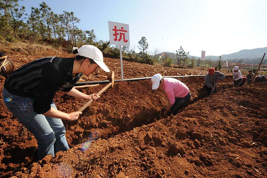 中國西南部分地區(qū)遭受了六十年甚至百年一遇的特大旱災(zāi),給春耕備耕帶來不利影響。受災(zāi)各地民眾在當(dāng)?shù)卣膸ьI(lǐng)下打響了萬眾一心降伏旱魃的戰(zhàn)役。
