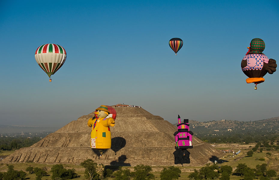 當?shù)貢r間3月21日,熱氣球從墨西哥特奧蒂瓦坎上空飛過。墨西哥近日在特奧蒂瓦坎附近舉行熱氣球節(jié)迎接春分的到來。圖片來源:中國新聞網(wǎng)