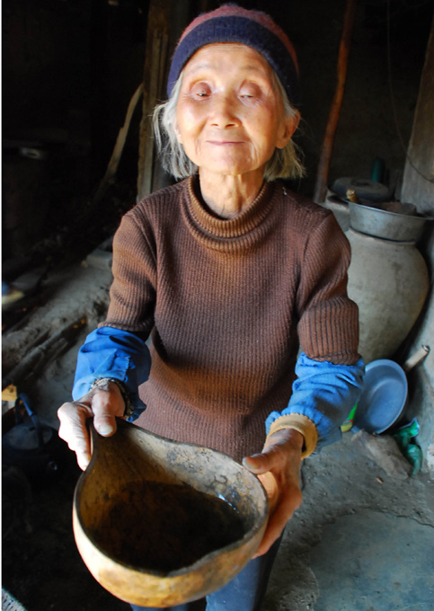 3月21日四川攀枝花仁和區(qū)87歲的施蘭英對著鏡頭說,“這是我一天的水”。中新社發(fā) 劉忠俊 攝