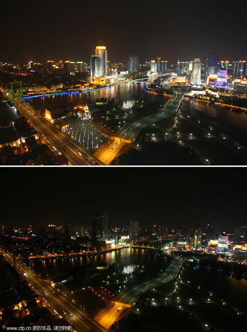 當(dāng)日,世界自然基金會(huì)倡導(dǎo)的“地球一小時(shí)”活動(dòng)得到全世界100多個(gè)國(guó)家和地區(qū)響應(yīng)。中國(guó)的北京、上海、長(zhǎng)沙、香港等許多城市也加入到這一活動(dòng)中。圖片來(lái)源:中國(guó)新聞網(wǎng)