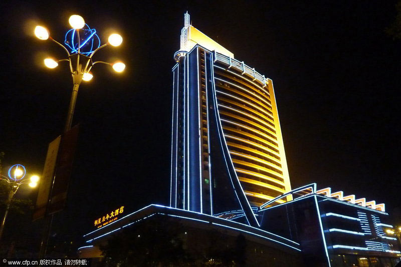3月27日20時(shí)30分,四川省遂寧市明星康年大酒店準(zhǔn)時(shí)熄燈,與全球同步“地球一小時(shí)”,以實(shí)際行動(dòng)推動(dòng)這項(xiàng)目前世界上規(guī)模最大的環(huán)保行動(dòng)。圖為酒店熄燈前的景觀(guān)。鐘敏/CFP