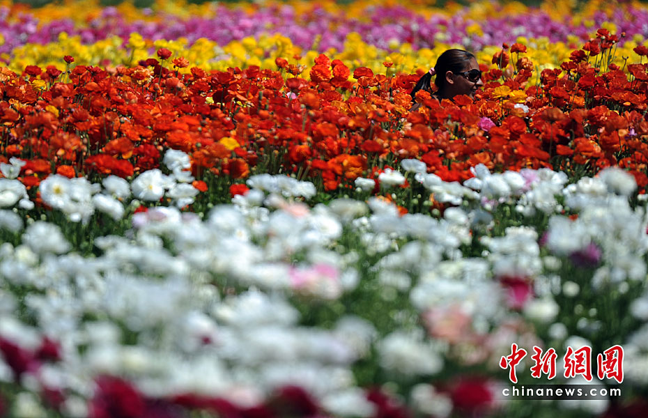 美國(guó)加利福尼亞州圣迭戈的卡爾斯巴德花田近日繁花盛開(kāi),姹紫嫣紅的花朵整齊地鋪滿在五十英畝的土地上,一望無(wú)垠的花海,美不勝收。圖片來(lái)源:中國(guó)新聞網(wǎng)