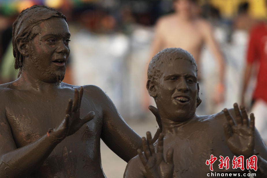 以色列美女泥漿中盡情撒歡慶節(jié)日