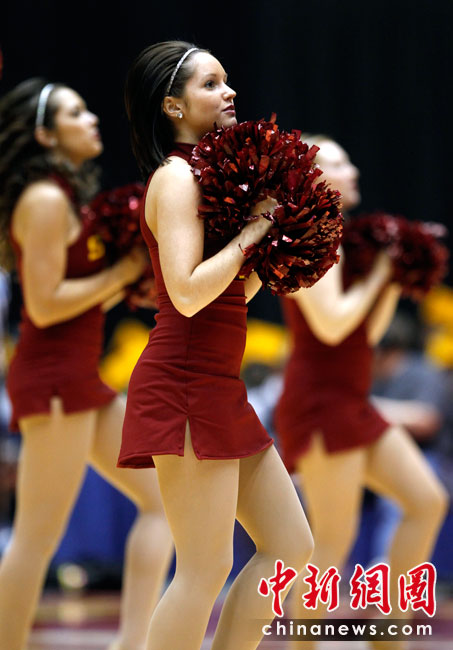 啦啦隊(duì)的歷史可追溯到原始部落時期,戰(zhàn)士們狩獵凱旋歸來時,人們給予歡呼及鼓勵的動作。最初的拉拉隊(duì)要追溯到19世紀(jì)80年代的美國大學(xué)校園,當(dāng)時的形式是在大學(xué)里的橄欖球賽上,一位領(lǐng)隊(duì)站在一大群人前面領(lǐng)導(dǎo)他們?yōu)樽约旱那蜿?duì)吶喊助威。圖片來源:中國新聞網(wǎng)