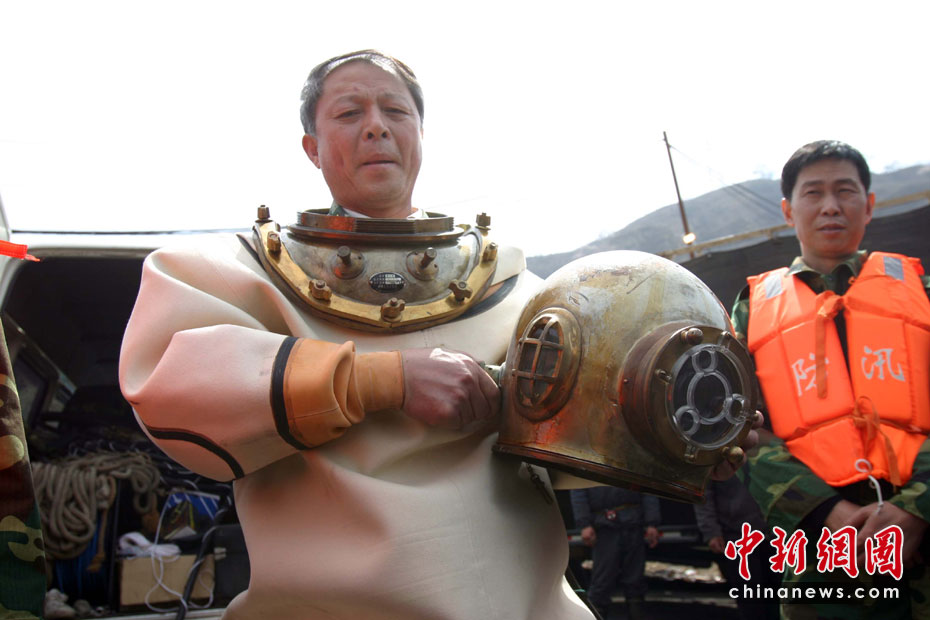 4月3日,華晉焦煤公司王家?guī)X礦透水事故第七天。中午11時(shí)20分許,沖鋒舟、蛙人抵達(dá)現(xiàn)場(chǎng),他們將盡快下井展開搶險(xiǎn)工作,其中蛙人主要工作為摸清井下具體環(huán)境,以及為井下礦工輸送營(yíng)養(yǎng)液,為井下礦工帶去生存的希望。圖為整裝待發(fā)的蛙人。中新社發(fā) 張?jiān)?攝