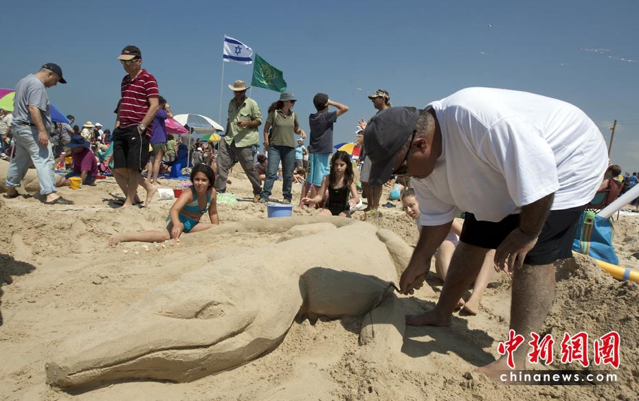 4月5日,以色列國家公園和自然保護區(qū)管理局在北城鎮(zhèn)Beit Yanai舉行了一年一度的沙雕大賽。世界眾多國家的沙雕愛好者前來參賽。圖片來源:中國新聞網(wǎng)