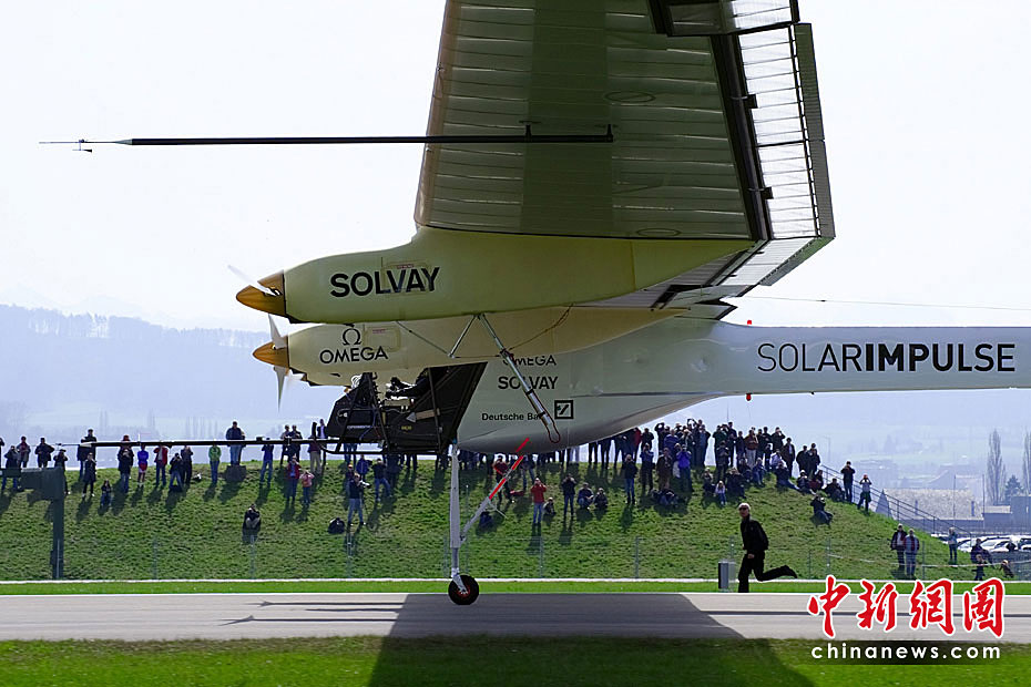 當(dāng)?shù)貢r(shí)間4月7日上午,全球首架依靠太陽能驅(qū)動的飛機(jī)進(jìn)行首次試飛,預(yù)計(jì)此種新型飛機(jī)將在2011年實(shí)現(xiàn)環(huán)球航行。圖片來源:中國新聞網(wǎng)