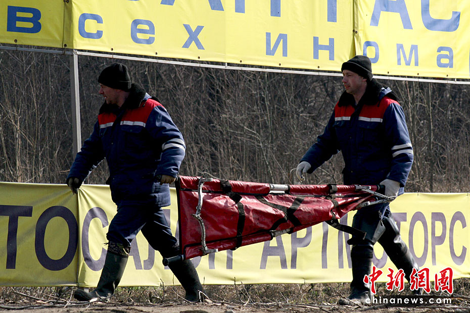 4月11日,波蘭總統(tǒng)卡欽斯基專機(jī)在俄羅斯斯摩棱斯克軍用機(jī)場墜毀地點(diǎn)附近的道路開通,但是警戒線核心區(qū)仍然關(guān)閉。俄波調(diào)查人員正在現(xiàn)場工作。圖片來源:中國新聞網(wǎng)