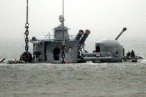 天安艦艦尾吊出水面