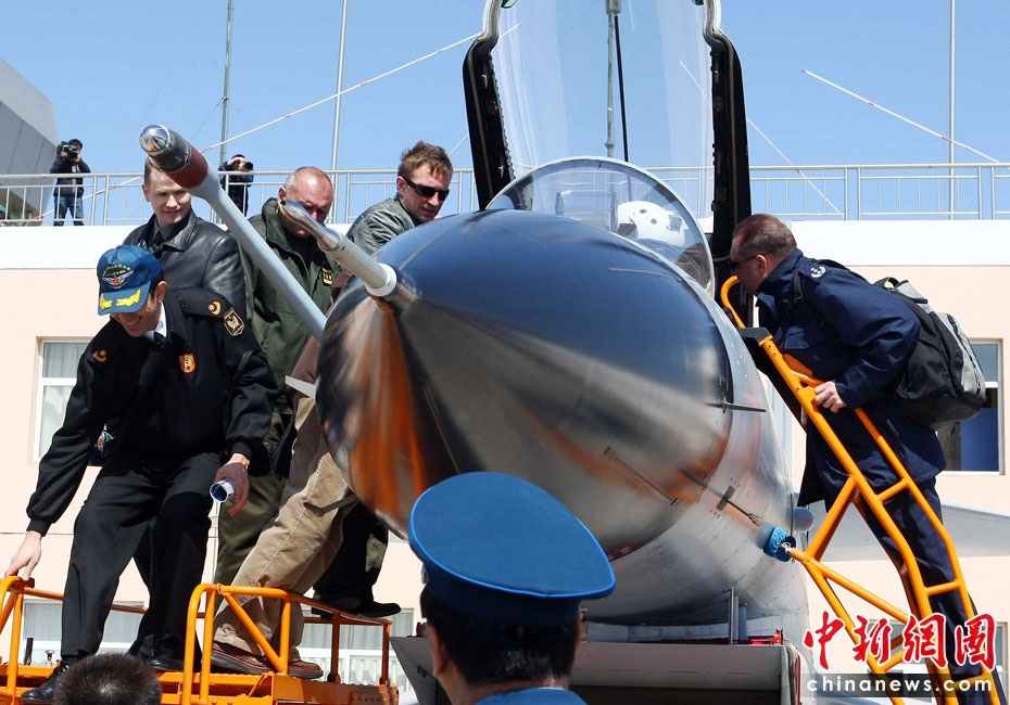 4月13日,47國駐華武官參觀了空軍航空兵某師新?lián)Q裝的殲十戰(zhàn)機飛行表演,并登上駕駛艙與飛行員零距離接觸。圖片來源:中國新聞網(wǎng)