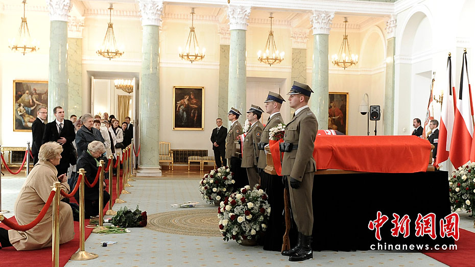 當(dāng)?shù)貢r(shí)間4月13日14時(shí),波蘭總統(tǒng)夫婦的遺體被安放在總統(tǒng)府最大的圓柱廳供民眾瞻仰和悼念。總統(tǒng)卡欽斯基及其夫人的葬禮將于18日舉行。圖片來源:中國新聞網(wǎng)