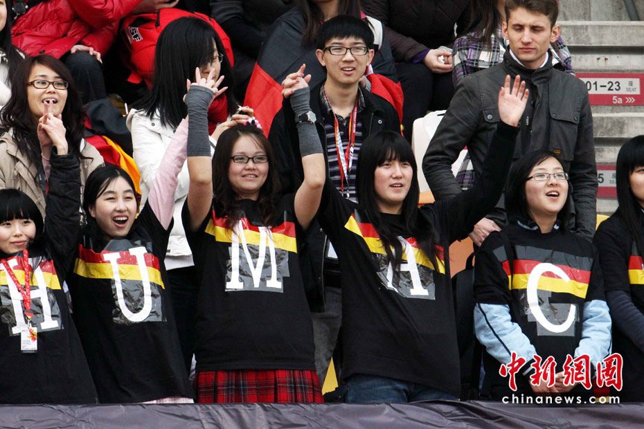 4月16日,2010國(guó)際汽聯(lián)F1世界錦標(biāo)賽上海站在上海國(guó)際賽車(chē)場(chǎng)開(kāi)始車(chē)手第一、第二次練習(xí)賽。代表梅賽德斯GP車(chē)隊(duì)出戰(zhàn)的老車(chē)王、德國(guó)車(chē)手舒馬赫重回上海賽道。 圖為舒馬赫的中國(guó)女粉絲在看臺(tái)上為偶像助威。 中新社記者 任晨鳴 攝