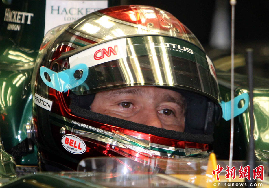 4月16日,2010國際汽聯(lián)F1世界錦標賽上海站在上海國際賽車場開始車手第一、第二次練習(xí)賽。圖為代表蓮花車隊出戰(zhàn)的意大利車手特魯利。中新社記者 任晨鳴 攝