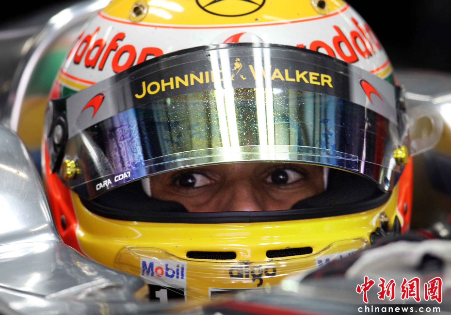 4月16日,2010國(guó)際汽聯(lián)F1世界錦標(biāo)賽上海站在上海國(guó)際賽車場(chǎng)開(kāi)始車手第一、第二次練習(xí)賽。圖為代表邁凱輪車隊(duì)出戰(zhàn)的英國(guó)車手漢密爾頓跑出當(dāng)日最好成績(jī)。中新社記者 任晨鳴 攝