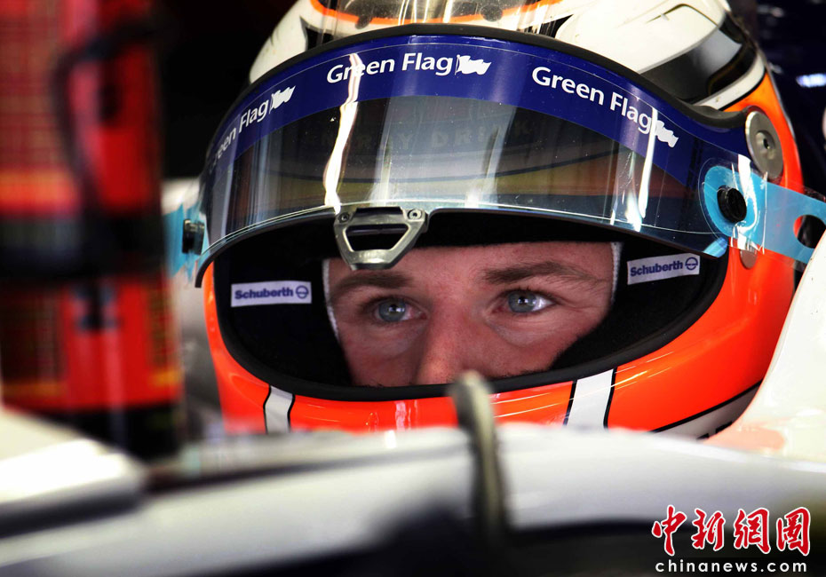 4月16日,2010國(guó)際汽聯(lián)F1世界錦標(biāo)賽上海站在上海國(guó)際賽車場(chǎng)開始車手第一、第二次練習(xí)賽。圖為代表威廉姆斯車隊(duì)出戰(zhàn)的德國(guó)車手霍肯伯格。中新社記者 任晨鳴 攝
