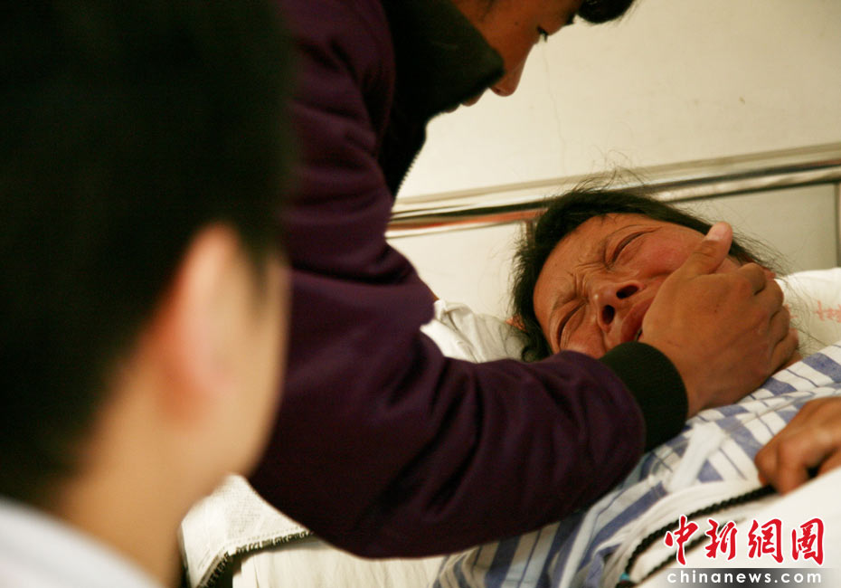 4月16日,四川省人民醫(yī)院神經(jīng)內(nèi)科醫(yī)生開(kāi)始對(duì)首個(gè)玉樹(shù)地震傷員進(jìn)行心理干預(yù),這名傷員叫嘎吉,于當(dāng)日凌晨隨機(jī)抵達(dá)成都,她的四個(gè)孩子有三個(gè)在地震中不幸遇難,一個(gè)重傷,丈夫也不幸遇難,目前,她已有三個(gè)多月身孕,情緒非常不穩(wěn)定。中新社發(fā) 張浪 攝