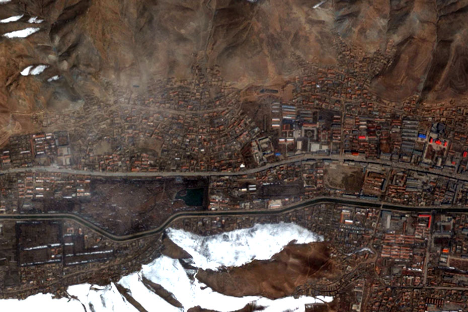 利用對地觀測中心2010年4月16日獲取的高分辨率航空遙感數(shù)據(jù),提取出玉樹州結(jié)古鎮(zhèn)城區(qū)范圍內(nèi)地震破壞最嚴重或典型地區(qū),使之與GoogleEarth中相應(yīng)位置的震前遙感衛(wèi)星數(shù)據(jù)進行對比,直觀展現(xiàn)結(jié)古鎮(zhèn)在此次地震中的受影響程度。圖片來源:中國科學(xué)院