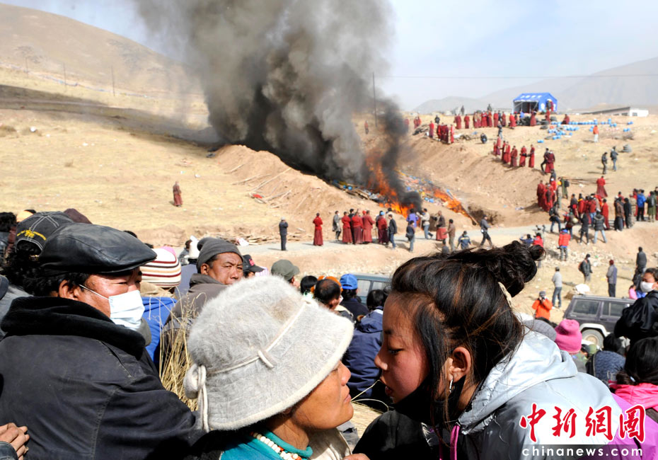 4月17日,青海省玉樹縣結(jié)古鎮(zhèn)附近的山坡上,眾多地震遇難者遺體被火葬。當(dāng)日,為妥善及時(shí)處理遇難人員遺體,預(yù)防災(zāi)區(qū)疫情的發(fā)生與流行,青海出臺地震遇難人員遺體處理意見,強(qiáng)調(diào)在處理遺體時(shí)要尊重少數(shù)民族喪葬習(xí)俗,尊重死者尊嚴(yán)。中新社發(fā) 廖攀 攝