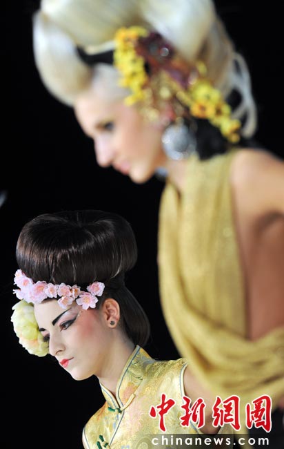 近日,第九屆“水晶天使”國(guó)際發(fā)型藝術(shù)節(jié)開幕,設(shè)計(jì)師紛紛秀出自己設(shè)計(jì)的新款發(fā)型。圖片來源:中國(guó)新聞網(wǎng)