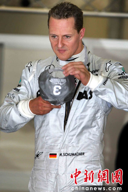 圖為梅賽德斯GP車隊(duì)DE舒馬赫在練習(xí)賽后按照規(guī)則稱量體重。中新社記者 任晨鳴 攝