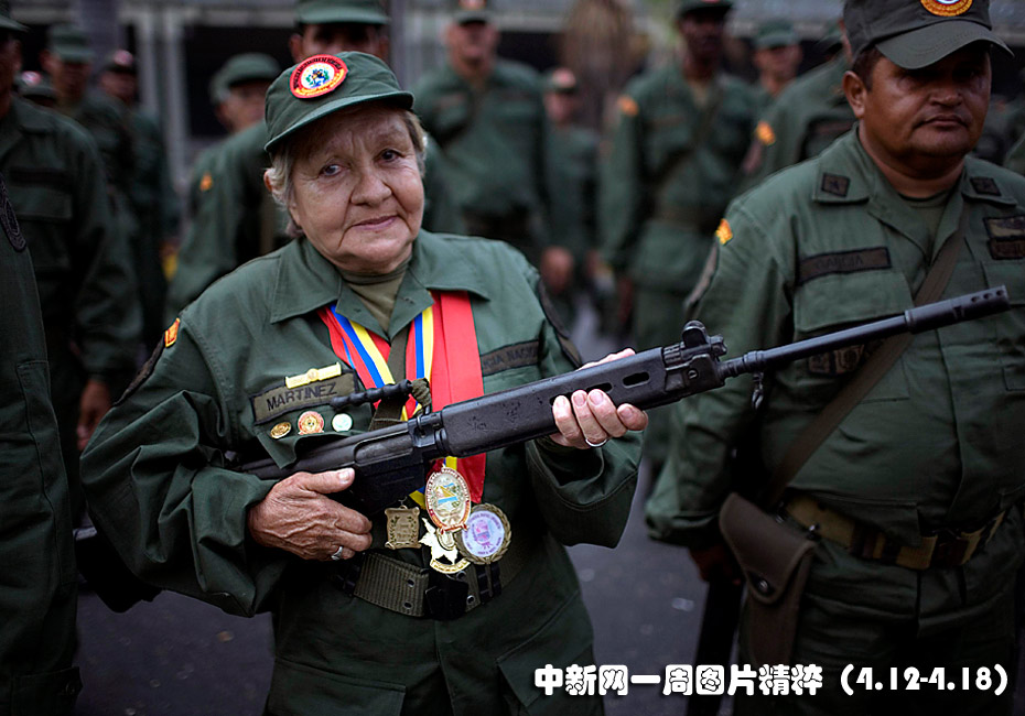 4月13日周二是委內(nèi)瑞拉的“民兵日”,一位老民兵手持步槍在首都加拉加斯參加紀(jì)念活動(dòng)?偨y(tǒng)查韋斯當(dāng)天發(fā)表講話(huà),以此紀(jì)念他在八年前被政變短暫推翻后重新執(zhí)政。