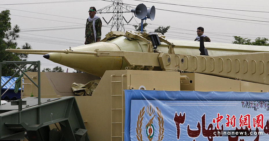 4月18日,伊朗德黑蘭舉行伊朗建軍節(jié)閱兵式。伊朗在閱兵式上展出了“力量”、“流星”和“泥石”等地對地導(dǎo)彈。圖片來源:中國新聞網(wǎng)
