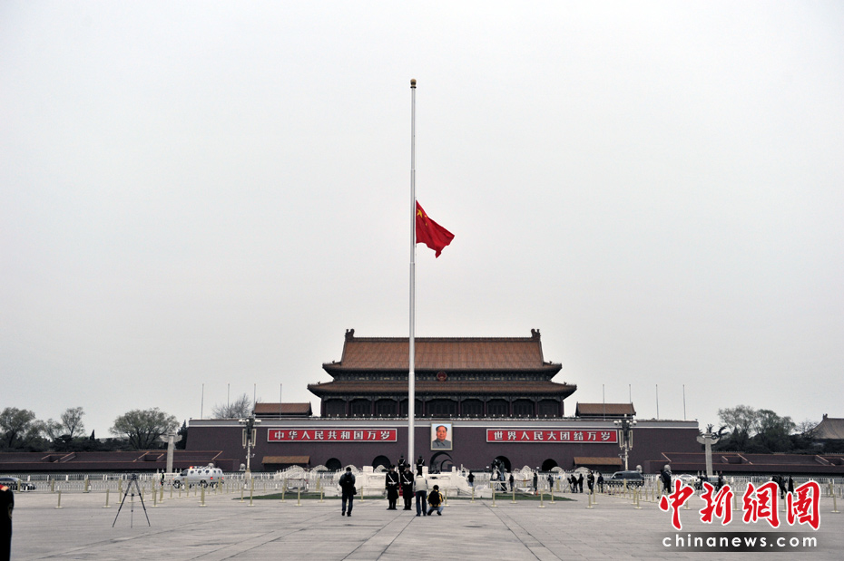 天安門廣場(chǎng)下半旗志哀