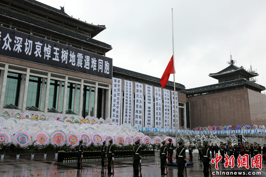 21日上午9時許,西寧各界民眾冒雪陸續(xù)來到該市最大的廣場——新寧廣場,悼念玉樹地震遇難同胞。中新社記者 符永康 攝