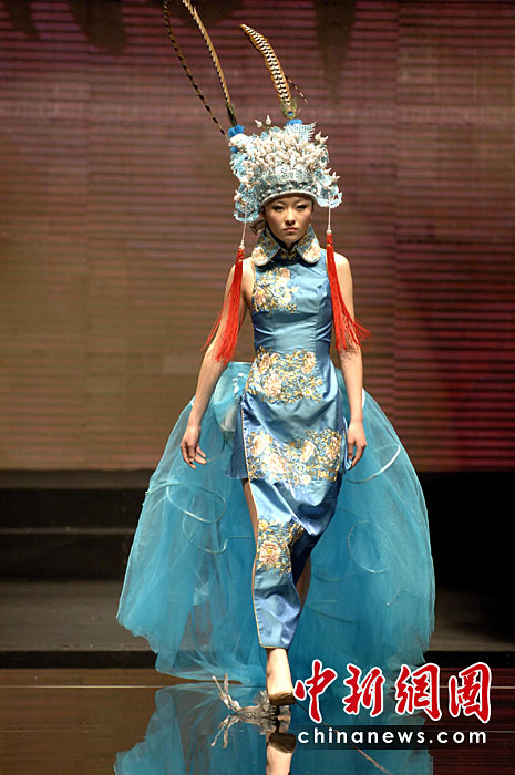 4月20日晚,首屆海西國際時(shí)裝周在福建石獅閉幕,本屆時(shí)裝周吸引了來自海峽兩岸的紡織服裝界企業(yè)家和知名服裝設(shè)計(jì)師。期間舉辦了12場時(shí)裝品牌和設(shè)計(jì)師作品動態(tài)發(fā)布會。圖為模特展示古今潮流結(jié)合的服裝。王東明 攝