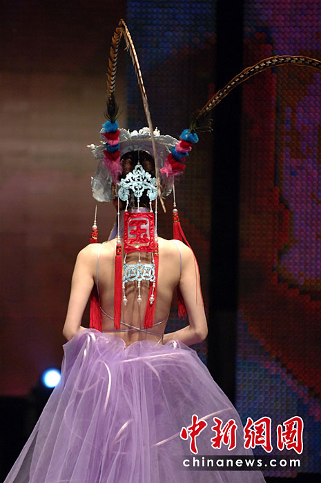 4月20日晚,首屆海西國(guó)際時(shí)裝周在福建石獅閉幕,本屆時(shí)裝周吸引了來(lái)自海峽兩岸的紡織服裝界企業(yè)家和知名服裝設(shè)計(jì)師。期間舉辦了12場(chǎng)時(shí)裝品牌和設(shè)計(jì)師作品動(dòng)態(tài)發(fā)布會(huì)。圖為模特展示古今潮流結(jié)合的服裝。王東明 攝